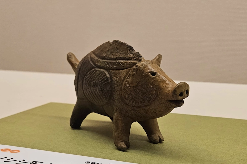しゃがんだり合掌した全身土偶、土偶頭部も表現が豊かで味わい深いと思いました。狩猟した動物の骨から削り出した飾り物や釣り針などの仕上がりも精巧だし、この時代にすでに漆を使った工芸技術があったとは驚きですね。個人的にはリアルに形作られたイノシシ型土製品に惹かれました。
