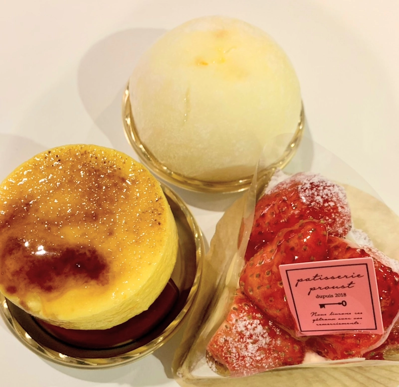 プルーストさんのケーキはどれも甘さ控えめ、心地よい香り一杯で美味しいです。インスタグラムで確認して買いに行きますが、売り切れも多い人気店です。